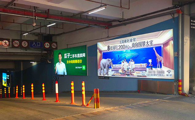 點(diǎn)擊番禺萬(wàn)達(dá)廣場(chǎng)停車(chē)場(chǎng)卡布燈箱解決方案