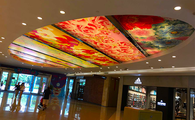 卡布軟膜燈箱不僅限于室內(nèi)壁掛式或是立式的廣告,也不限于正正規(guī)規(guī)的長(zhǎng)方形或正方形,像這種商業(yè)類(lèi)的天花軟膜燈箱現(xiàn)在也是裝飾裝潢的新形勢(shì),特別創(chuàng)意的廣告可以快速吸引消費(fèi)者眼球.